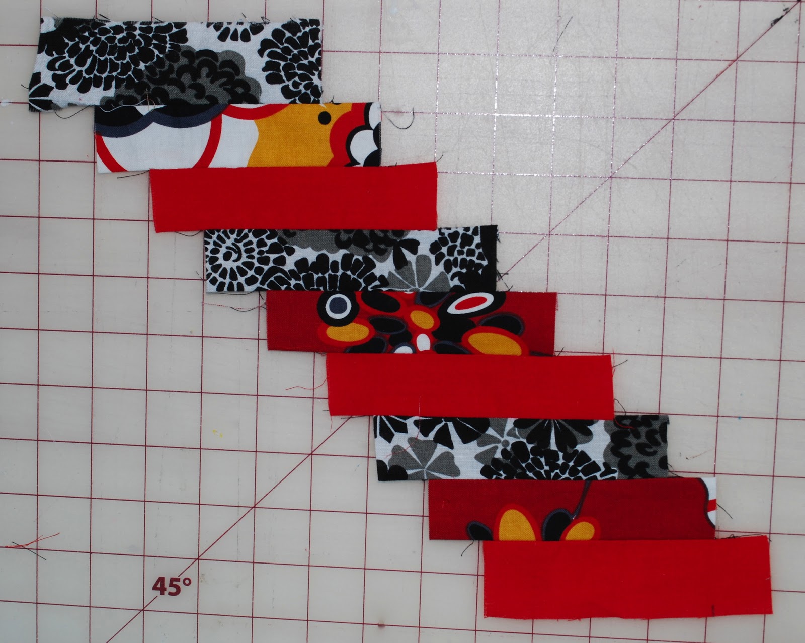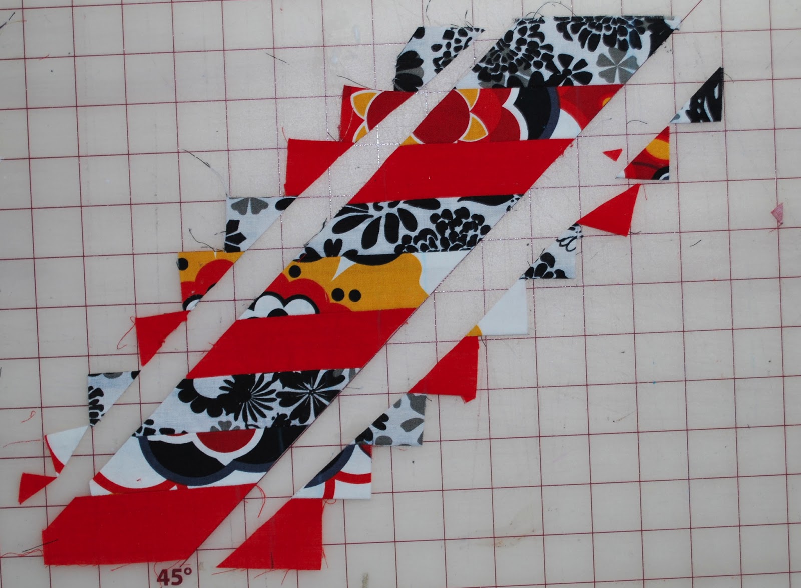 Then I trimmed my strips to 2.5″ wide at a 45 degree angle.
