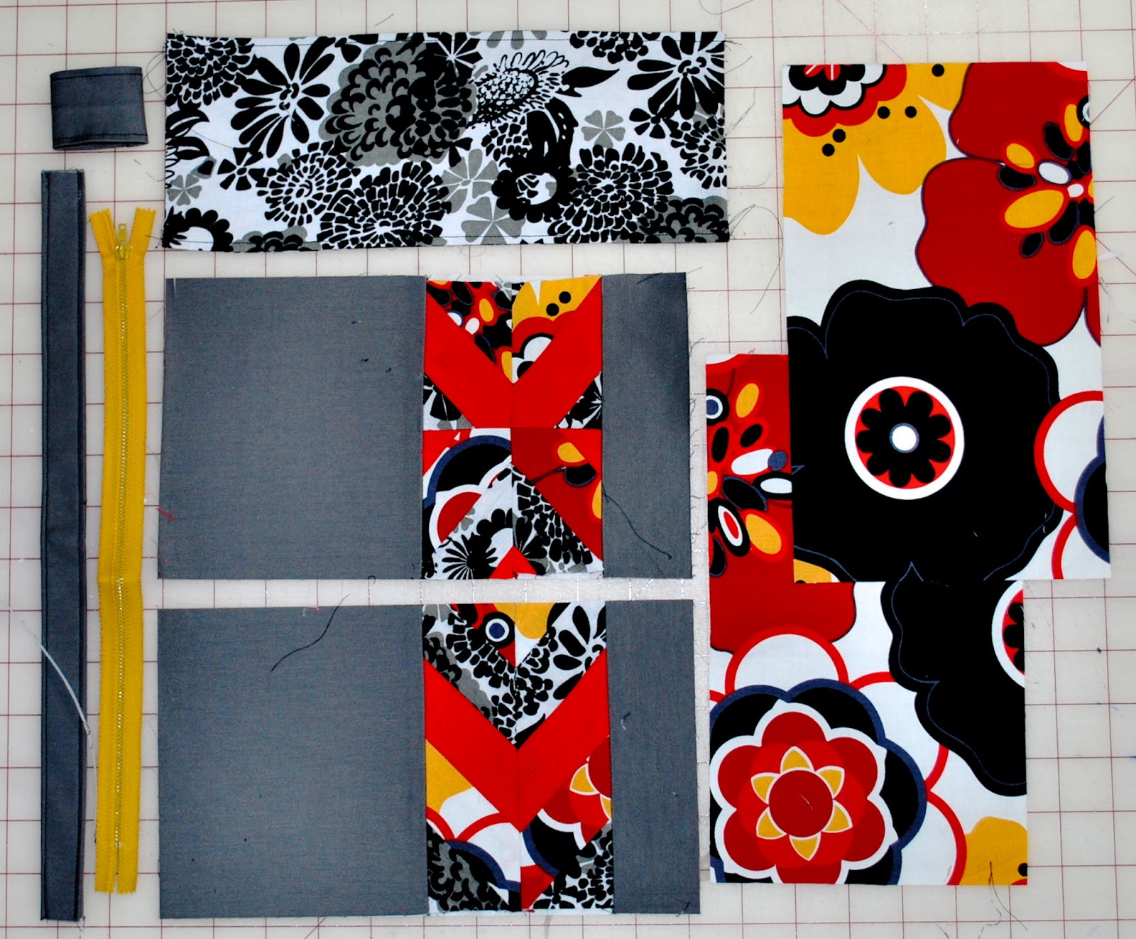 Here’s my pieces all ready to be sewn up. The rest of the clutch was sewn according to the tutorial.