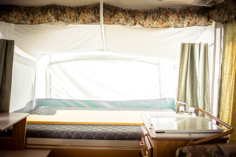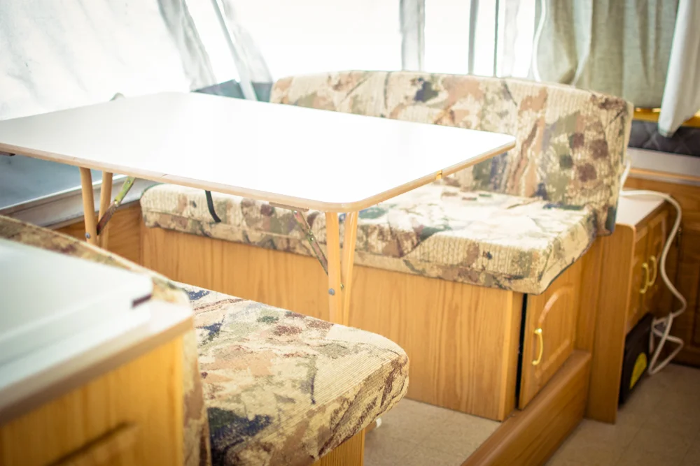Look what I got this week! A pop-up camper. I’m so excited. I’ve been saving my pennies and searching craigslist for something just right for our family and I finally took the plunge. It’s not new – 15 years old, actually. But the previous owners took good care of it and I think (hope) it will last for another 10 years in our family.