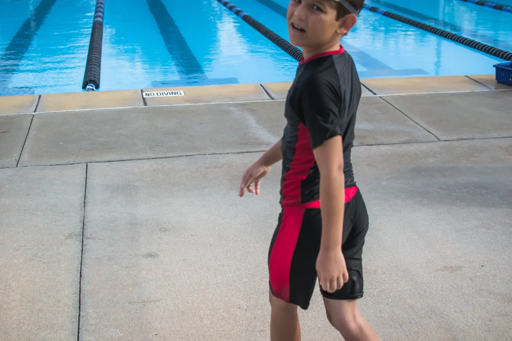 I had some other swim patterns from Peekaboo Patterns on hand, so I also made Connor the Monaco Swim Trunks – with the legs lengthened by 3”. Now these shorts look just like the ‘jammers’ that, according to Connor, ‘all the fast swimmer wear.’