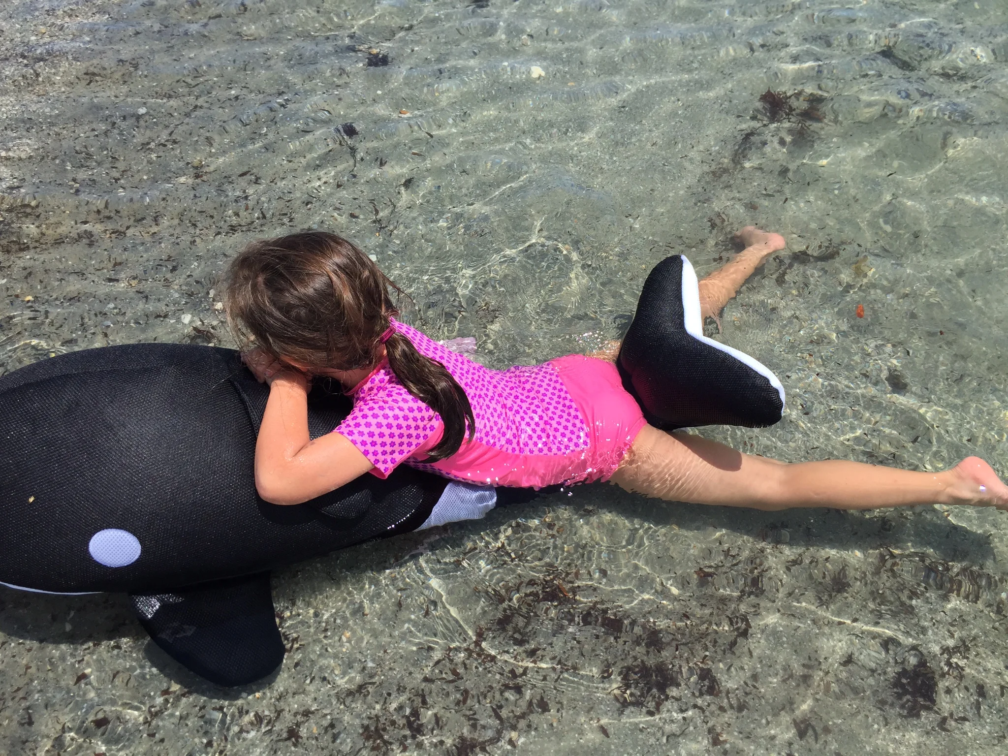 Cadie’s little swim bottoms were sewn from the Santa Monica Tankini Pattern. She’s wearing them backwards, lol! I didn’t notice until she had been swimming for quite some time. Not that the shape is weird. The bottoms offer great coverage in the front and the back.