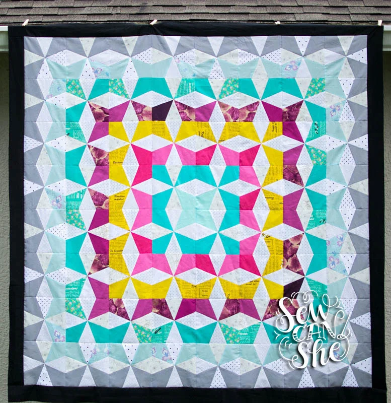 But something strange happened. Once I started paper piecing, I could not stop! It felt like delirium. I kept printing more and more papers and adding more and more rings of color to this quilt. I’m totally surprised that the colors worked out so well because honestly I did not plan them ahead of time. I scrambled for the next color every time I ran out of blocks to make!
