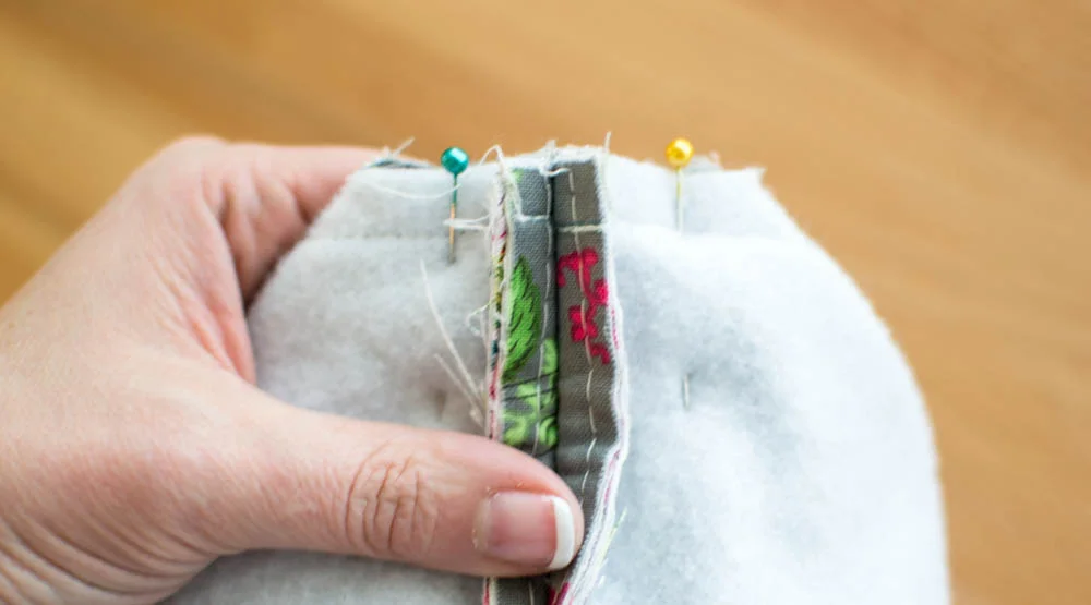 1. Pin the exterior sides right sides together along the sides and bottom.
