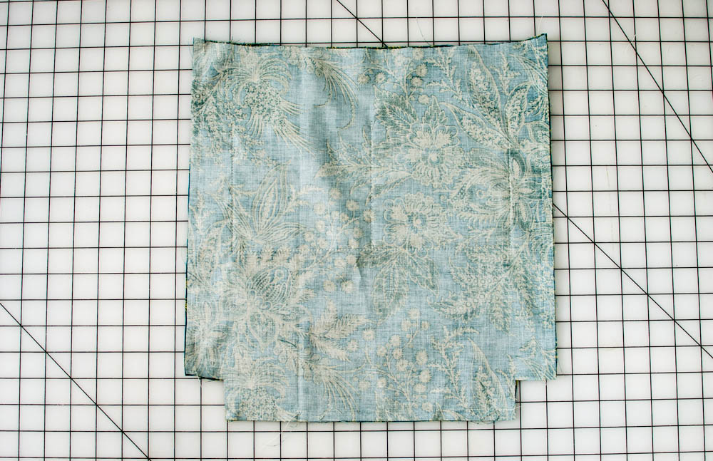 2. Stitch along the side and bottom edges (not around the cut out corners). Press the seams open.