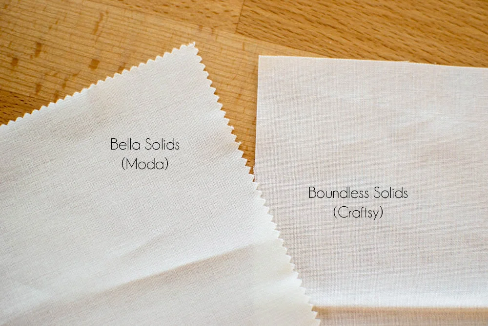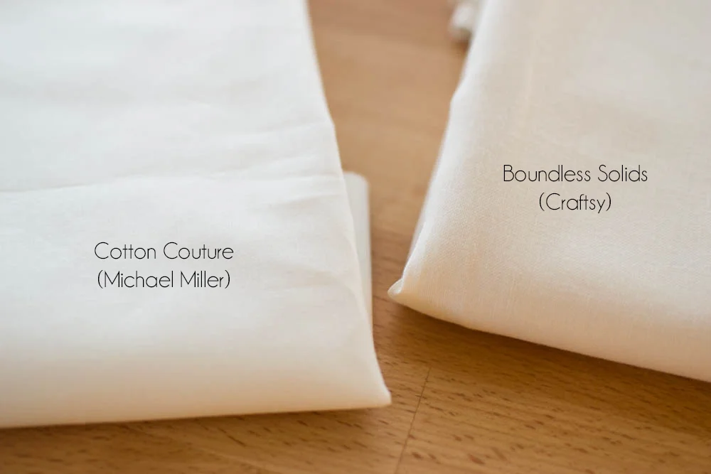 There is also a slight sheen to the Cotton Couture solid that you don’t see on the Boundless, Kona, or Bella fabrics. So if you want a totally matte off-white fabric, pick one of those.