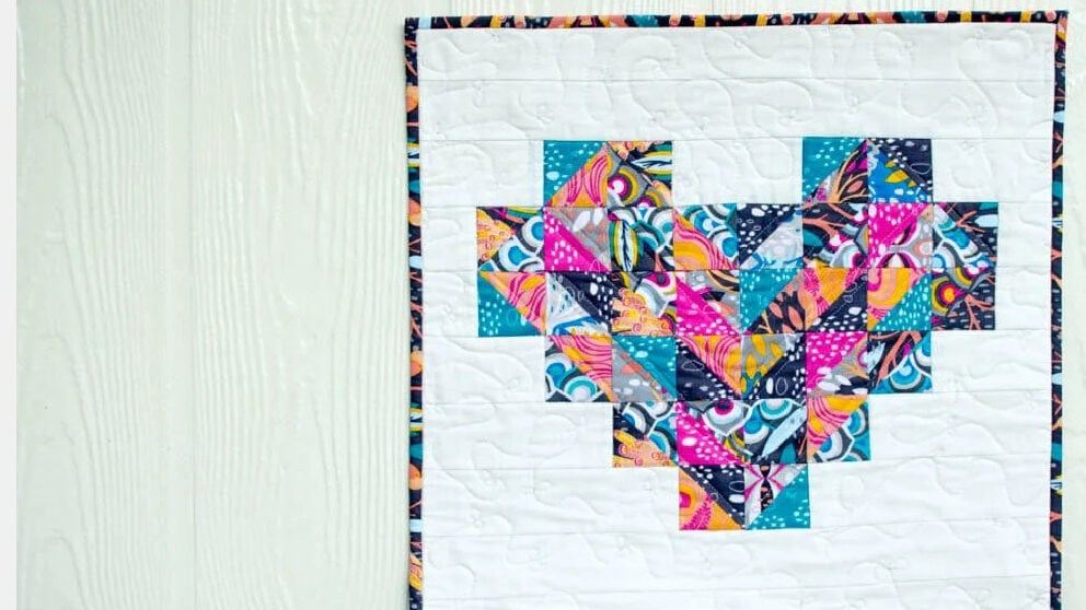 Show love any time of the year with a darling HST Heart Quilt wall hanging. This pattern is also so easy to customize and make larger or smaller depending on the size of half square triangles that you sew. I love scrappy quilts like this! Tag me on Instagram @sewcanshe to show me what you did with your scrappy heart!