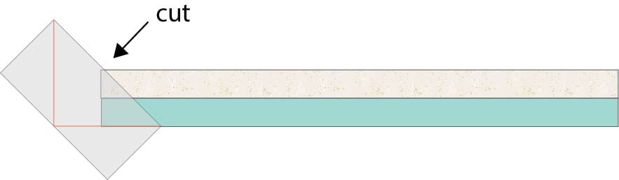 In my diagrams, I have simplified the ruler to show only the lines that you will need to use. If you are using a different ruler, the 45 degree angle line might be in a different place. That’s okay.
