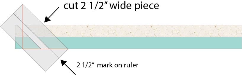 2. Move the ruler over to the right so that the 2 1/2” mark or line on your ruler is now along the cut edge. Cut to make a 2 1/2” wide piece.