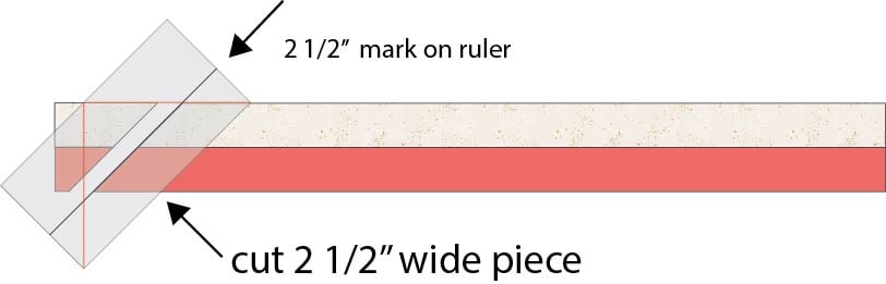 5. Move the ruler over to the right so that the 2 1/2” mark or line on your ruler is now along the cut edge. Cut to make a 2 1/2” wide piece.