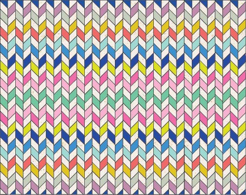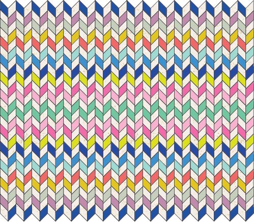 You’ll need just one jelly roll of 40 brightly colored 2 1/2” fabric strips, plus 2 7/8 yards of light background fabric to make a throw quilt approximately 61” x 68”. For the background fabric, you could also use a second jelly roll.