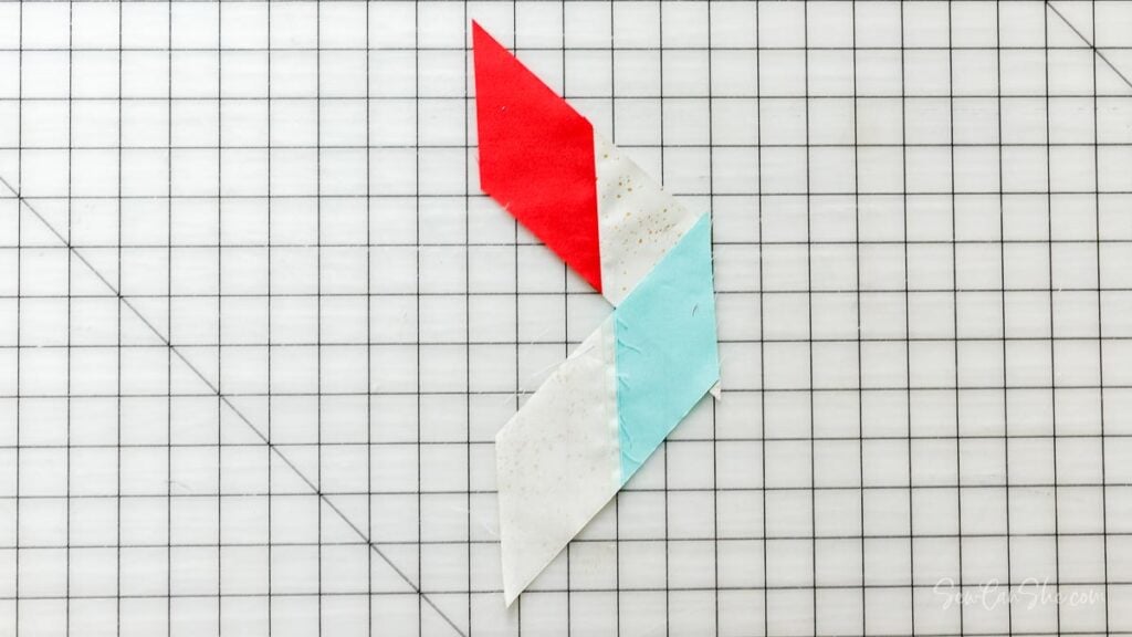 Remember to be consistent and sew all of the pieces together the same way, with the background fabric on the bottom (or the top).