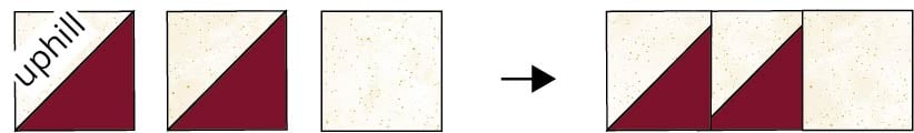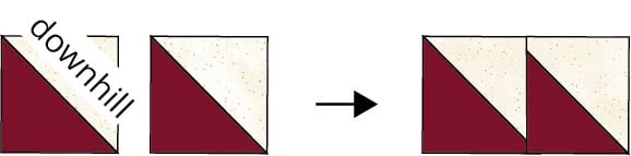 3. Sew two HST units together exactly as shown above – let’s call it going ‘downhill.’