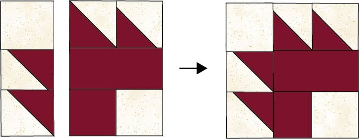 2. Sew the sets of HST pieces together as shown. Press.