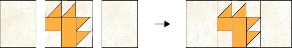 6. Sew the two HST units and background fabric square that are going ‘uphill’ to the left side of the piece, as shown.