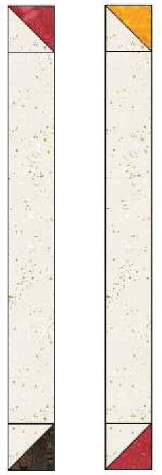 3. Sew the 2” x 41” background fabric strips to the inside edges of the rows of half square triangles, as shown. Press.