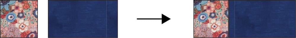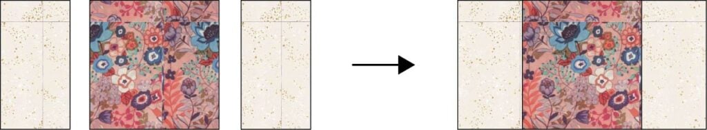 3. Sew a 3 1/2” x 6 1/2” Fabric C rectangle to both sides of a 6 1/2” x 6 1/2” Fabric A square. Press the seams toward the Fabric A Square.