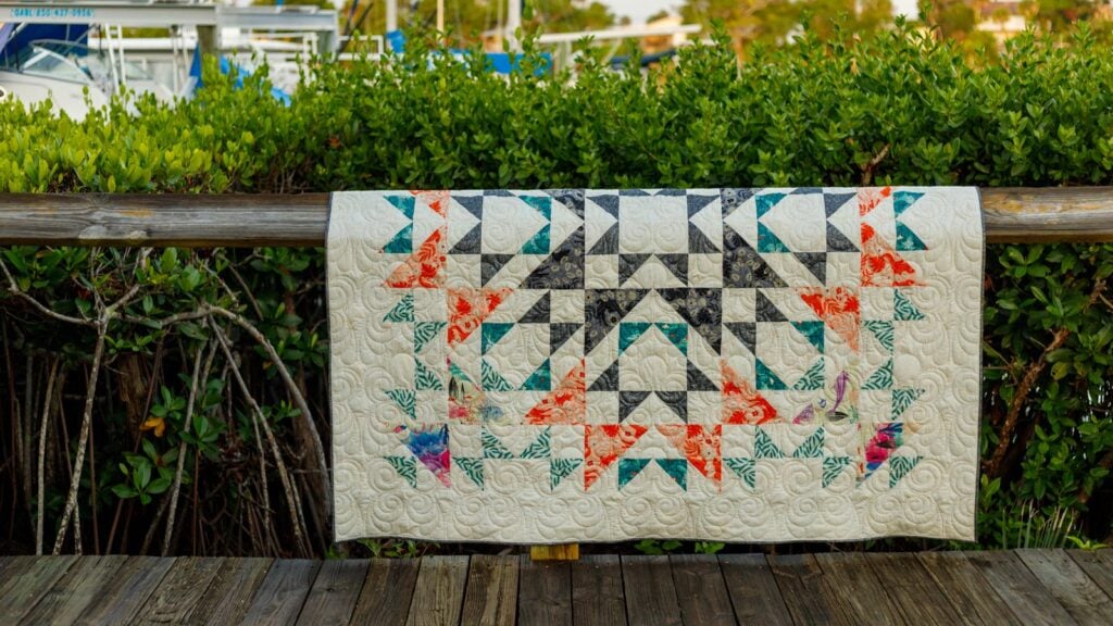 When making this quilt, you’ll learn a shortcut method to half square triangles. The finished size is approximately 76” x 76” – perfect for snugging up on the couch!