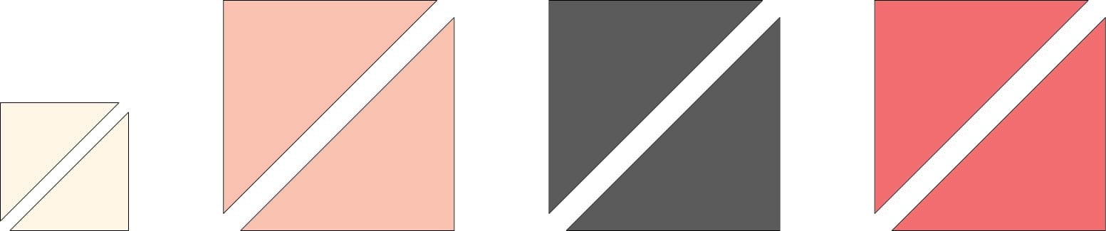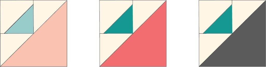 1. Cut all of the 4 7/8” x 4 7/8” squares and 8 7/8” x 8 7/8” squares in half diagonally.
