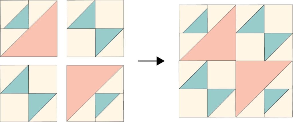Finished block size 16” x 16”.