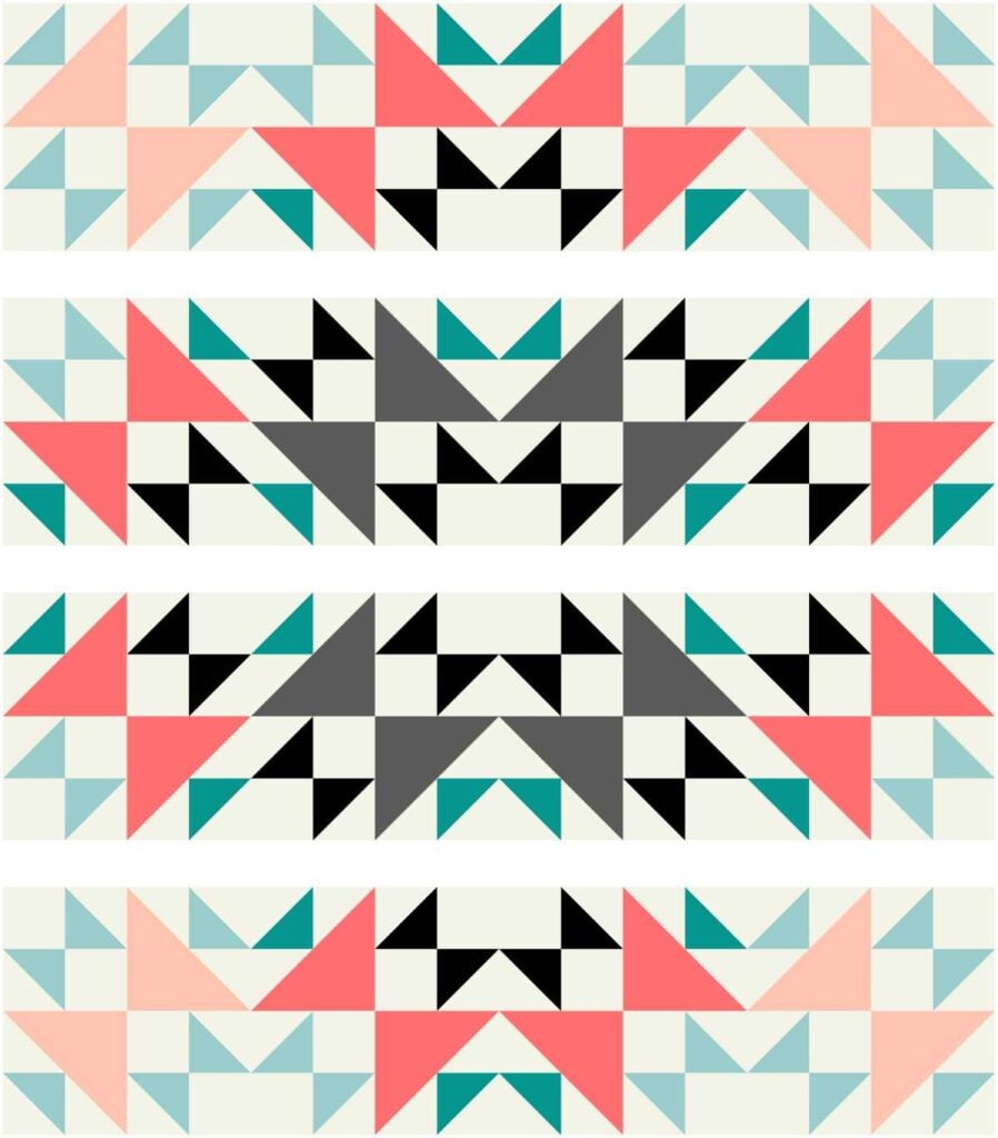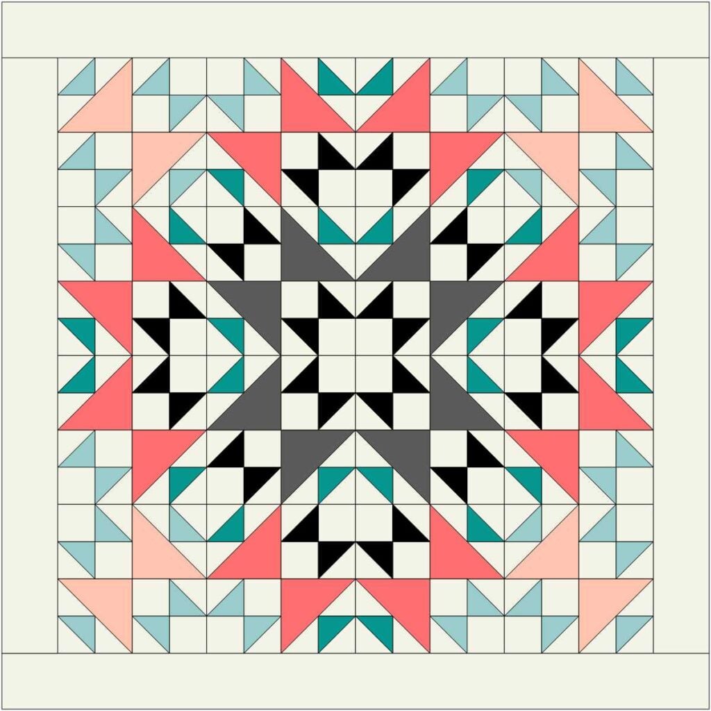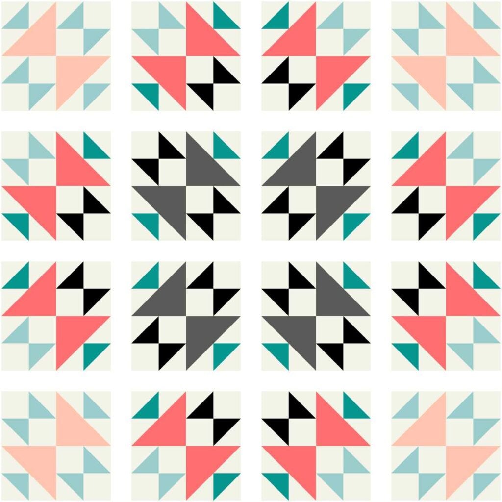 I used EQ8 Quilt Design Software to see what the Hourglass Puzzle quilt would look like in so many different fabrics. I finally decided to use my stash of Florida from Ruby Star Society. I love how it turned out, but since these fabrics are no longer available, I made the illustrated quilt diagrams with solid colors to help you pick your fabrics.