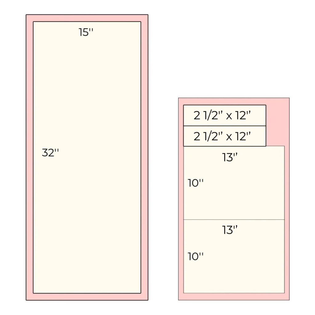 Note: all cutting dimensions are height x width. This pattern works great with directional fabric IF you cut the main pieces as stated (height x width). If your fabric is not directional, you may cut your fabric rectangles however you like.