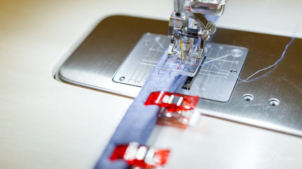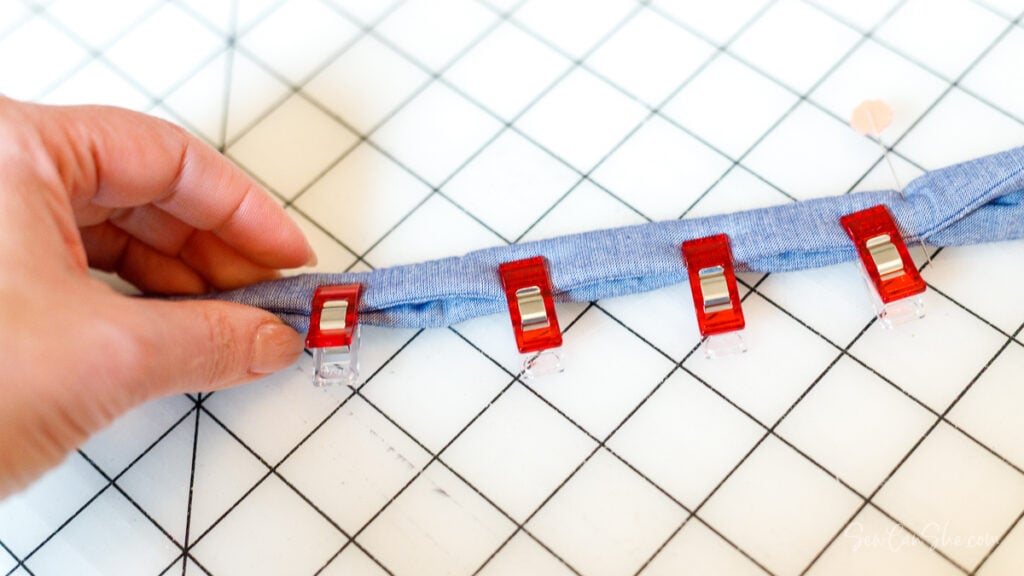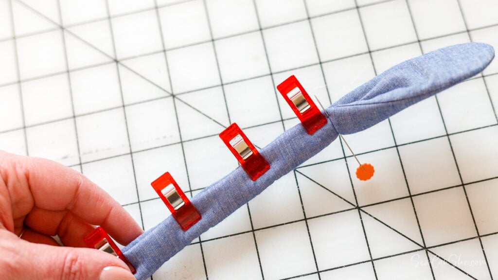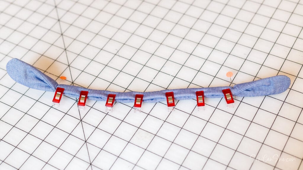 I like to place Wonderclips along my straps about every 1 1/2” to make sewing them faster and easier.