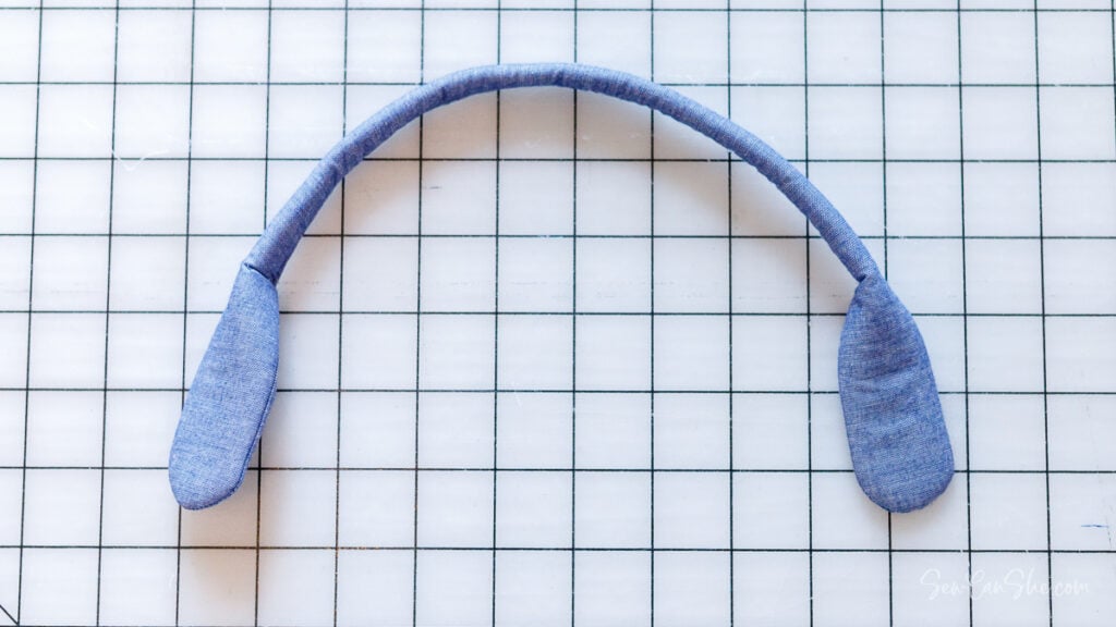 5. Turn the handles right side out using the chopstick or other tube turning tool. Carefully push out the seam at the ends.