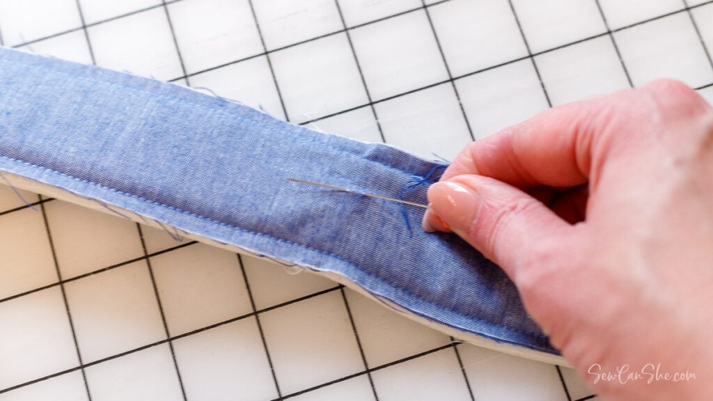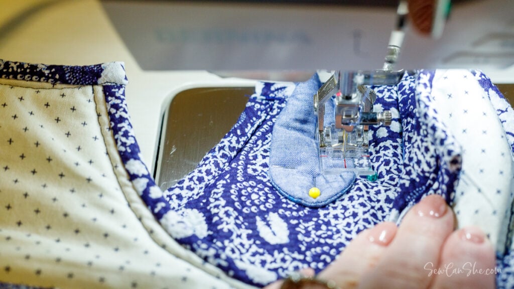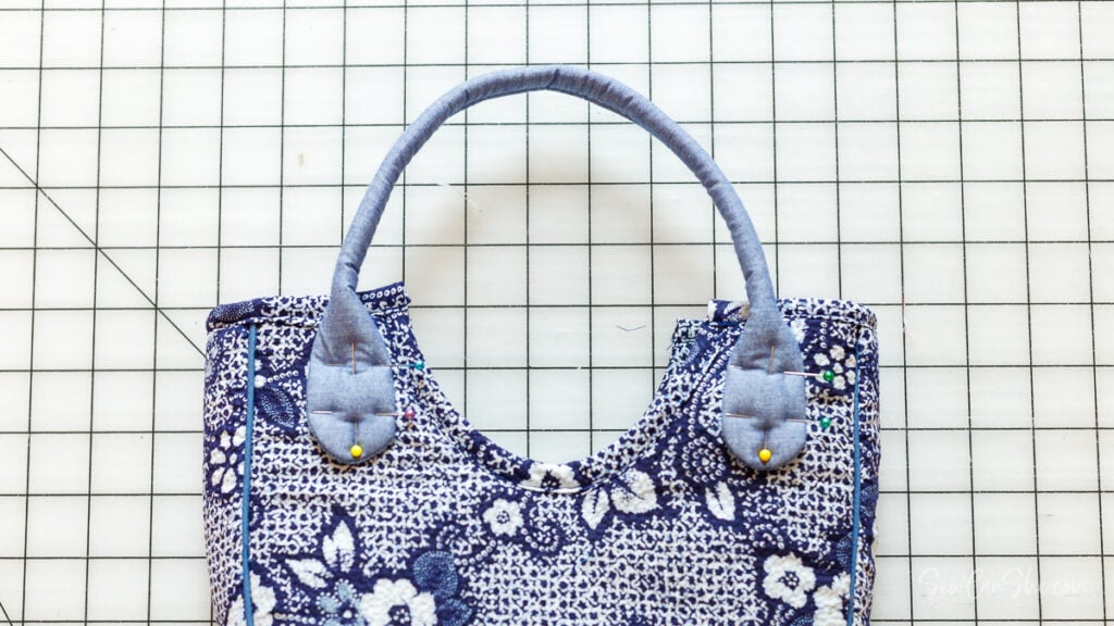 Use 3-4 pins to make sure the handle stays in place as you sew.