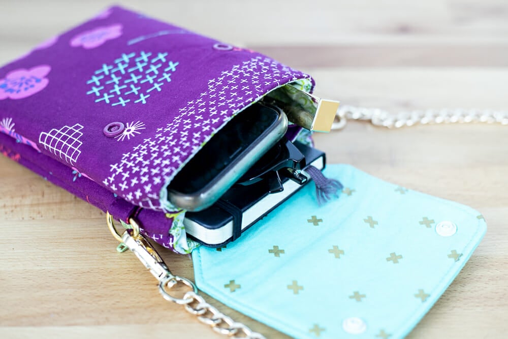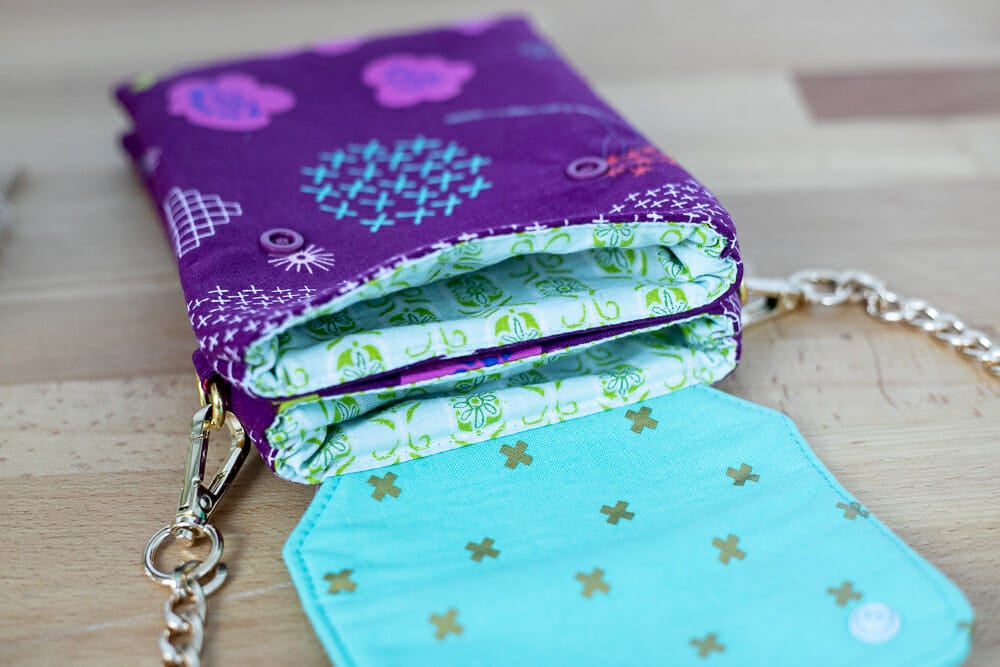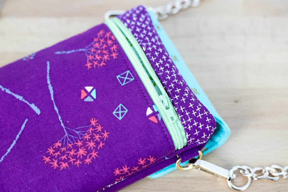 This free crossbody bag pattern includes two main pockets, a slim third pocket, plus a zipper pocket on the back! Let me show you how to sew your own strap or use a pretty one you can purchase online.