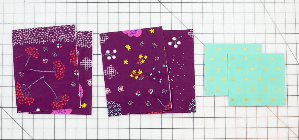 1. Press to fuse the fusible fleece interfacing to the back side of the 4 exterior fabric rectangles and the 2 flap rectangles.