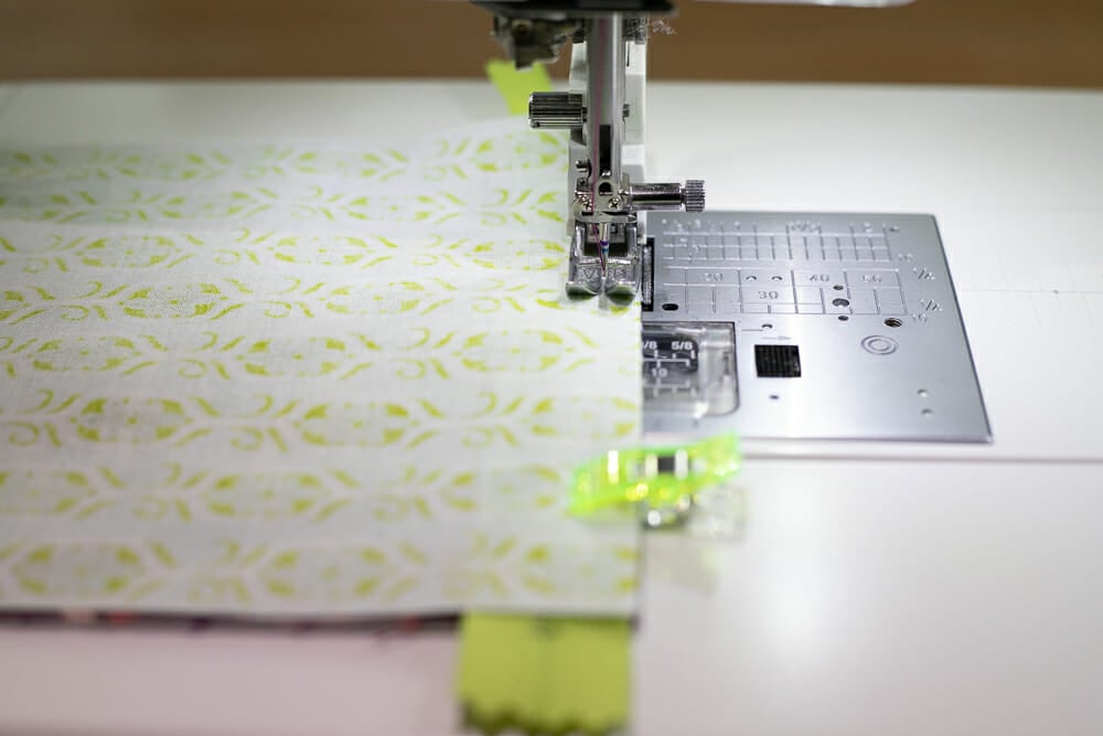 3. Sew along the top edge with a 1/4’’ seam allowance.