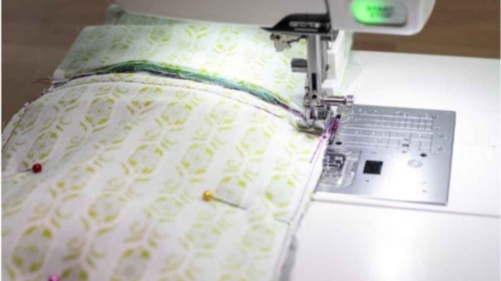 6. The next step is to sew around three sides with a 1/4’’ seam allowance, leaving the unpinned edge at the top of the lining open.