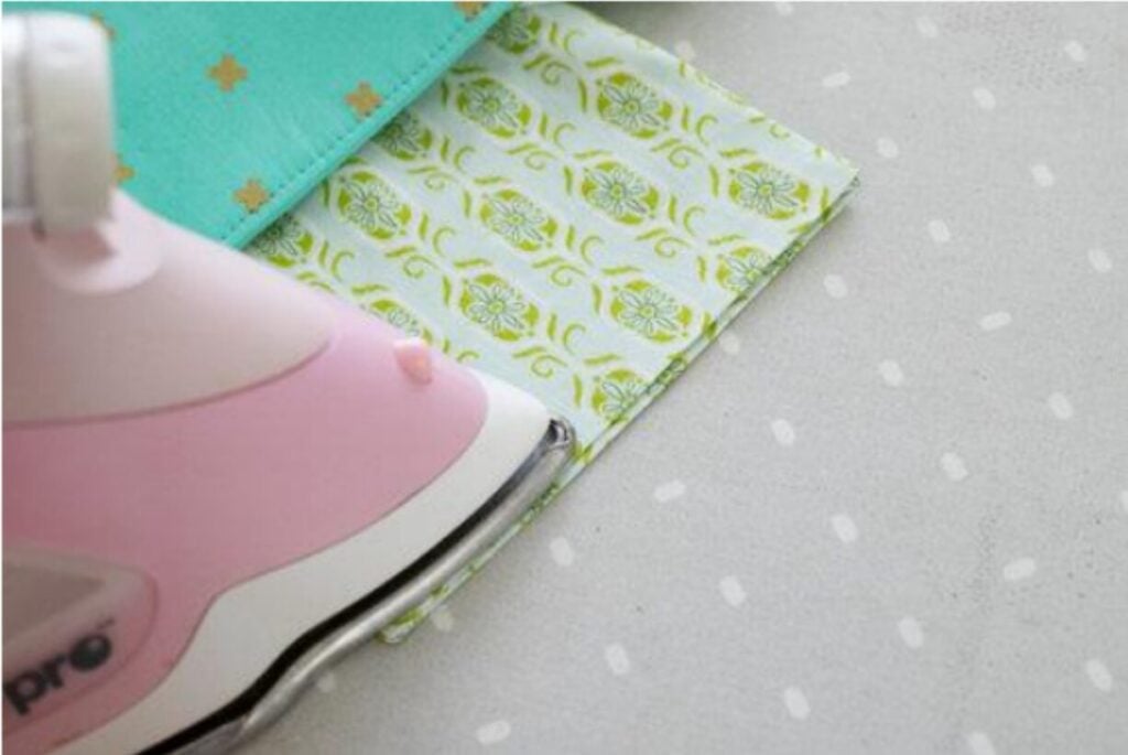 2. Open all of the pieces and press flat. Place the exterior and lining wrong sides together and press the top edge.