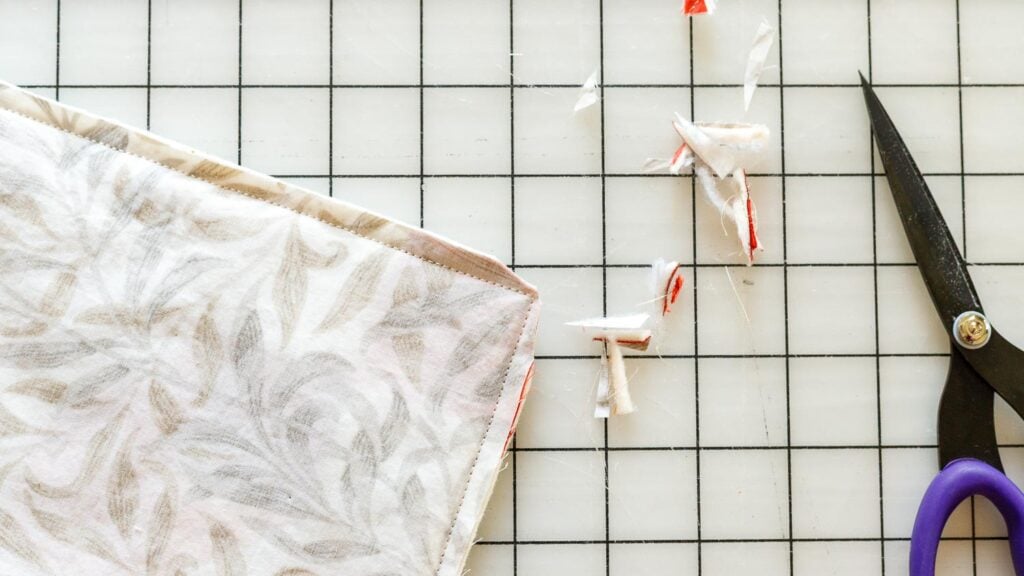 4. Trim away the extra fabric at the corners of the trivet. Take care not to cut the stitches.
