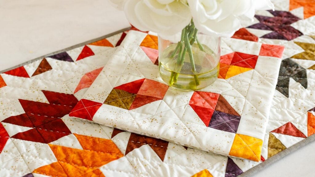 Did you sew the free Fall Festival Table Runner Pattern that I shared previously? If so, get ready to use your scraps to make a coordinating set because this pattern is perfect for that!