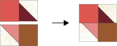 2. Sew two sets together to make a 4-patch piece.