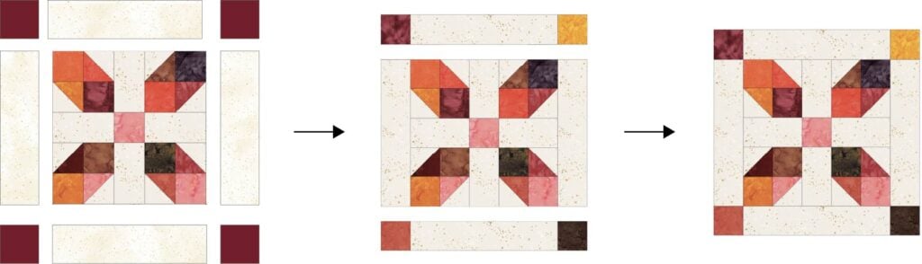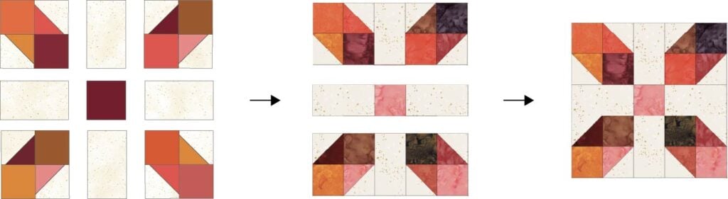 Sew the rows together to make the center of the block.