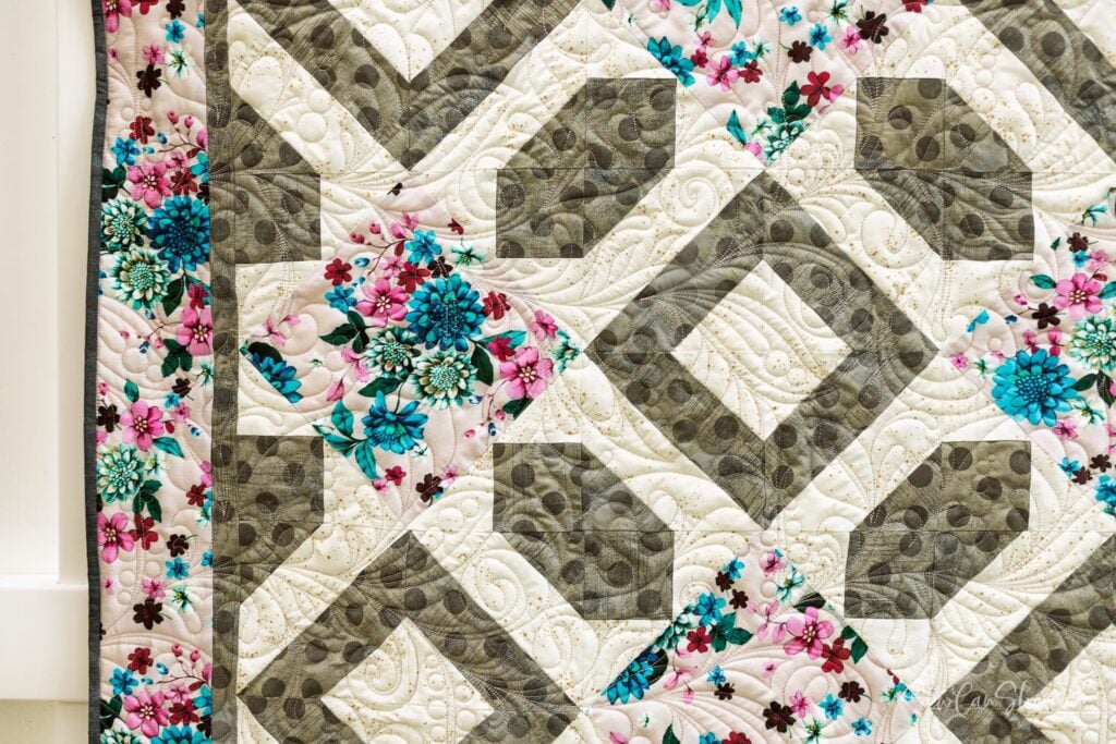 Most 3-yard quilts are throw quilts or lap quilts because they don’t require a lot of fabric. You can also make a darling baby quilt with quilt patterns like this. Since this type of quilt isn’t very big, you can finish it quickly and give it as a gift or use it in your home. Because of the size, throw quilts like this one are easy to quilt on a domestic sewing machine.