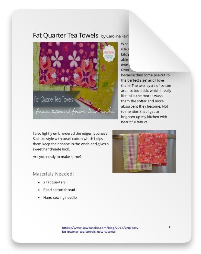 FAT QUARTER TEA TOWELS SEWING PATTERN