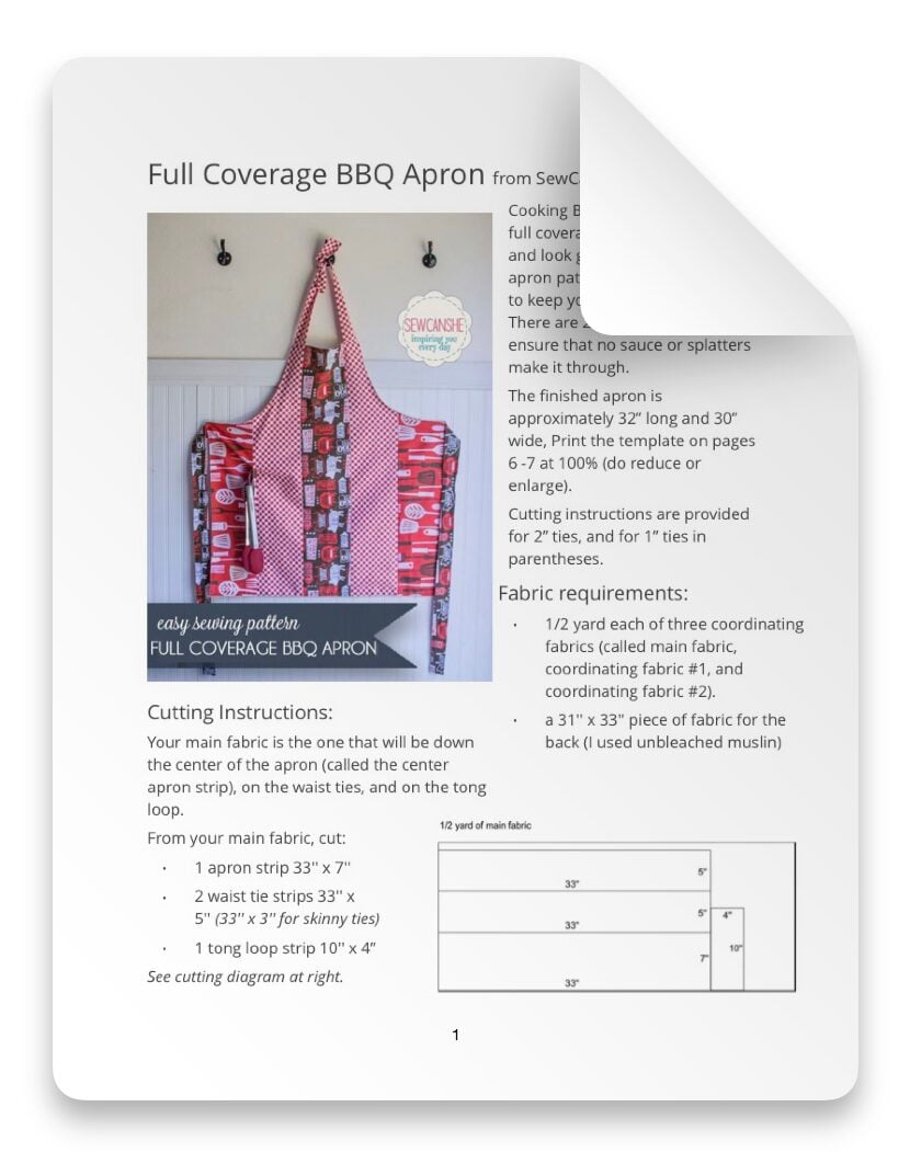Cooking BBQ be messy – sew a full apron from my easy sewing pattern to keep clean and look great! This easy to sew apron pattern has a hanging loop to keep your tongs handy too. There are 2 layers of fabric to ensure that no sauce or splatters make it through.