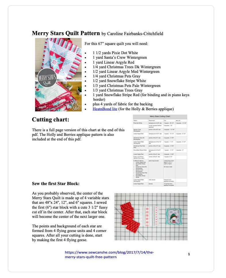 This file contains all of the instructions, plus the step by step photos that have been reduced to 3’’ or smaller on their longest edge. There are 9 pages, including 7 pages of instructions, one page with a cutting chart, and 1 page with applique templates.
