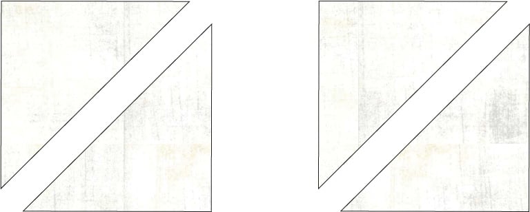 1. Cut all of the Fabric C 3 7/8” x 3 7/8” squares in half diagonally.
