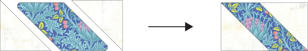 2. Sew Fabric C triangles to the longer edges of each Fabric A parallelogram.